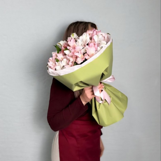 Моно букет из альстромерий очаровывает своей простотой и природной красотой. Эти изящные цветы с яркими пятнистыми лепестками напоминают маленькие произведения искусства, создавая ощущение радости и легкости. Альстромерии традиционно ассоциируются с дружбой, преданностью и поддержкой, что делает такой букет идеальным подарком для близких людей, выражающим теплые чувства и внимание. Этот нежный букет украсит любой интерьер и подарит массу приятных эмоций.